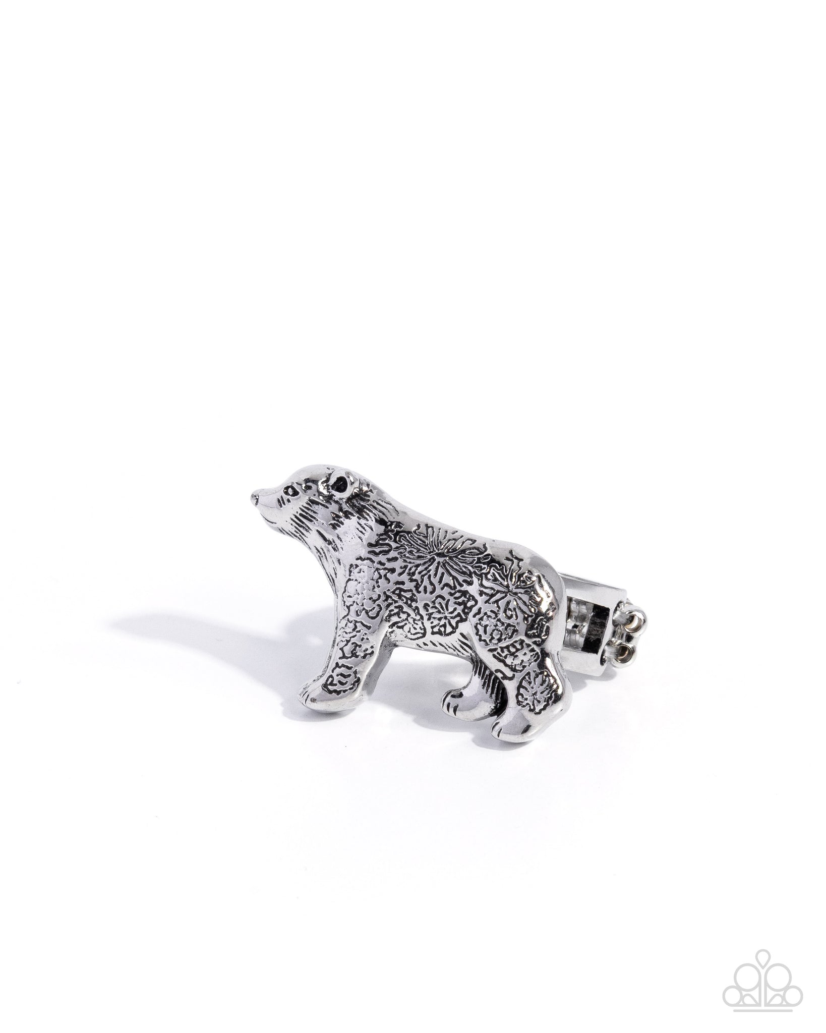 Stamped with floral textures, a glistening silver polar bear prowls atop a dainty silver band atop the finger for an adorably arctic-inspired centerpiece. Features a dainty stretchy band for a flexible fit.