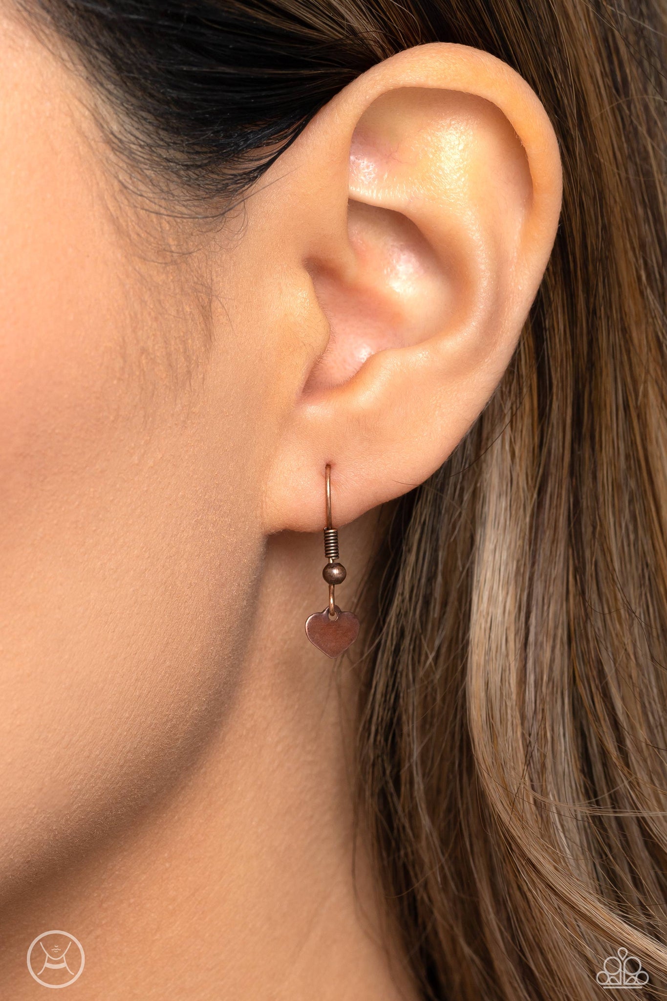 Infused along a dainty copper cascade chain, sleek copper hearts coalesce around the neckline for a subtly romantic finish. Features an adjustable clasp closure.