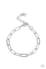 An oversized collection of silver oblong links interlock around the wrist for a casual hint of shimmer. Features an adjustable clasp closure.