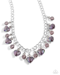 A faceted smoky crystal-like bead gives way to sparkling black iridescent heart beads that alternate with round black beads from a thin silver curb chain for a calming, courting display. Features an adjustable clasp closure. Due to its prismatic palette, color may vary.